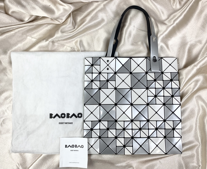 BAO BAO ISSEY MIYAKE Ichimatsu Tote 6X6 in white*silver